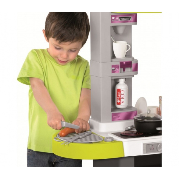 Красивая, с оригинальным дизайном, современная кухня, которая подходит для игры как мальчиков, так и девочек.