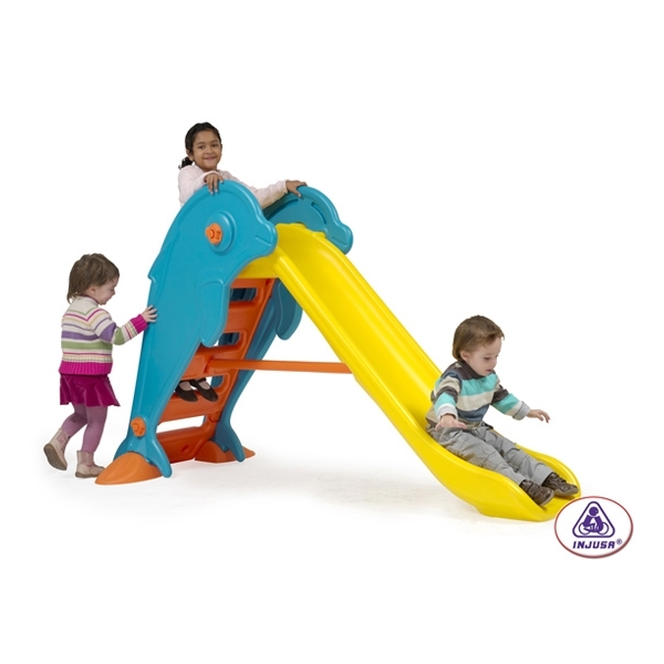 Детская горка Injusa Дельфин 2001 изготовлена в форме большого голубого дельфина, благодаря дизайну она очень красочная, а также имеет легкую систему сложения, очень удобна в эксплуатации.
