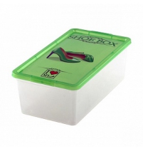 Коробка для хранения обуви. Рамер: 190x105x320 мм. Материал: полипропилен. Цвет: прозрачный белый.Прозрачный пластик позволяет легко увидеть какая обувь находится внутри. В отличии от картонных коробок, пластиковую легко мыть и она прослужит значительно дольше. Так же в коробке предусмотрены отверстия для проветривания обуви. Пластиковые замки и ручки позволят удобно доставать и переносить коробку.