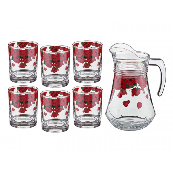 Кувшин и 6 стаканов Розарий предназначен для подачи сока и других прохладительных напитков. Наборы кувшинов со стаканами – необходимый элемент сервировки стола в ресторанах, кафе и барах.