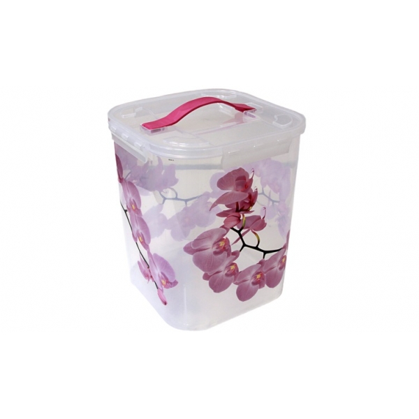Контейнер пластиковый для хранения Деко 10л Орхидея арт.М 2829. Вместительный, легкий и надежный пластиковый контейнер, изготовлен из полипропилена с ярким дизайном. С таким оригинальным контейнером вы сможете удобно сложить самые разные вещи и получить удовольствие от того, какой порядок настал в вашем доме. Крышка оснащена специальными защелками. Контейнер имеет сглаженные углы и удобную ручку-переноску.