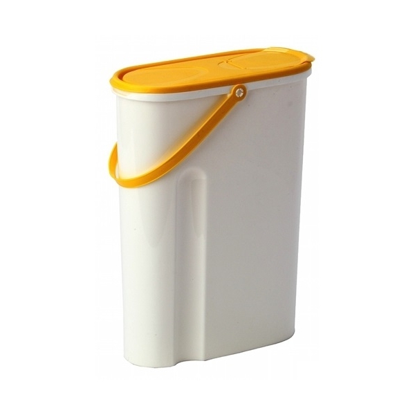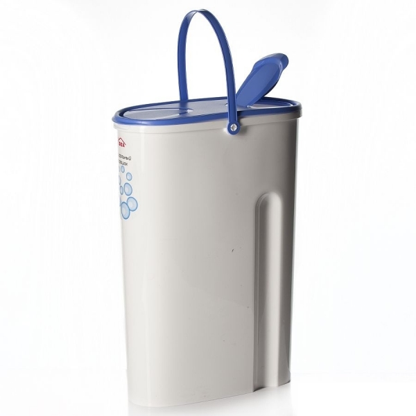 Контейнер пластиковый для стирального порошка 8л. арт. М 1241. Контейнер вмещает около 5.6 кг стирального порошка. Полиэтиленовая крышка плотно прилегает к корпусу и к клапану и не пропускает влагу. Удобная ручка поможет не только переносить контейнер, но и держать его когда нужно засыпать порошок в стиральную машину.