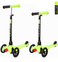Трехколесная конструкция самоката обеспечивает надежную устойчивость, а широкая подножка позволяет свободно стоять на двух ногах. Рулевое управление изготовлено в виде джойстика с ручкой округлой формы. Поворот транспортного средства достигается наклоном джойстика вправо или влево. Такое управление обеспечивает большую безопасность и легкость при совершении маневров.