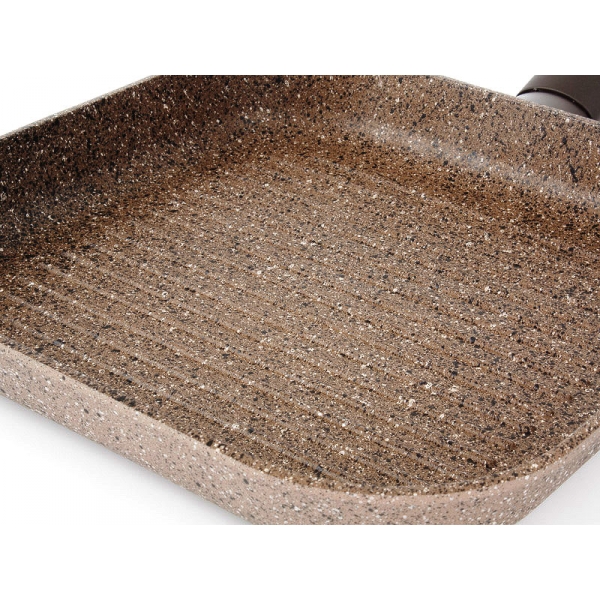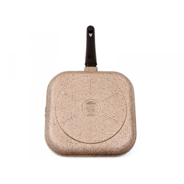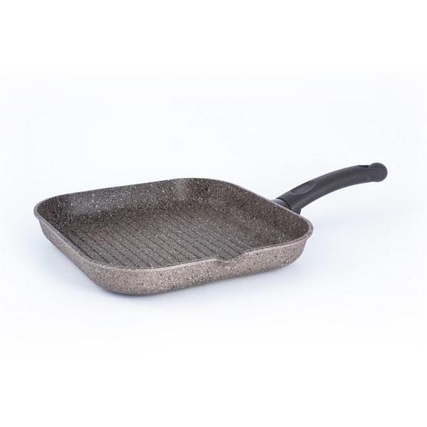 Новое в серии посуды Арт Гранит – сковорода гриль. Размеры сковороды просто идеально подходят для готовки на варочной поверхности, толщина сковорода подобрана таким образом, что бы максимально использовать все свойства покрытия Арт Гранит и семислойного покрытия этой сковороды. Сковорода быстро нагревается и благодаря тому, что она изготовлена из литого алюминия, долго держит те5пло. Свойства этой сковороды - гриль Арт Гранит позволят Вам приготовить настоящий гриль из любого продукта – мяса, курицы или рыбы.