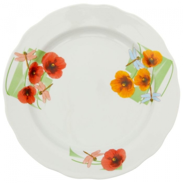 Тарелка мелкая диам. 240 мм Вырезной край Июльский мак из высококачественного фарфора с декоративным рисунком.