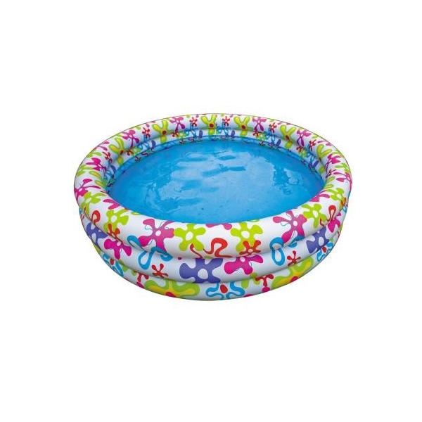 Детский надувной бассейн Intex Мозаика - это яркий, нарядный бассейн представляет собой маленькое круглого озера, которое состоит из трех надувных колец с рисунками и изображениям морской тематики.