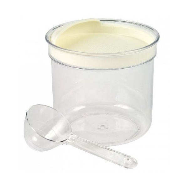 Практичный контейнер изготовлен из высококачественных материалов. Приспособлен для хранения сыпучих продуктов. К контейнеру прилагается мерная ложка для облегчения дозировки содержимого. Контейнер можно мыть в посудомоечной машине. Незаменим в вашем доме. Товар сертифицирован для контакта с пищевыми продуктами.