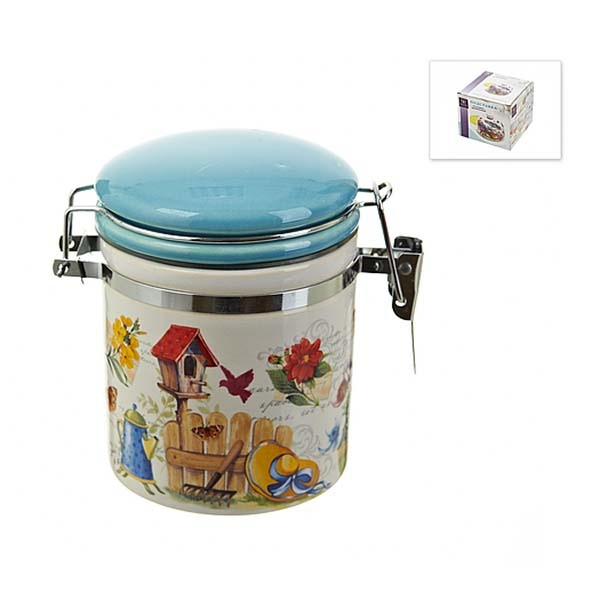 Банка для сыпучих продуктов Сад надежно защитит продукты от влаги, пыли, насекомых. Керамическая посуда выполнена из природных материалов, гигиенична, безопасна. Не взаимодействует с продуктами питания, поэтому прекрасно подходит в качестве посуды для хранения. Банка легко и надежно закрывается крышкой с металлической клипсой.