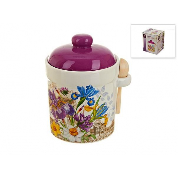 Банка для сыпучих продуктов "Ирис" надежно защитит продукты от влаги, пыли, насекомых. Керамическая посуда выполнена из природных материалов, гигиенична, безопасна. Не взаимодействует с продуктами питания, поэтому прекрасно подходит в качестве посуды для хранения. Банка легко и надежно закрывается крышкой с металлической клипсой.
