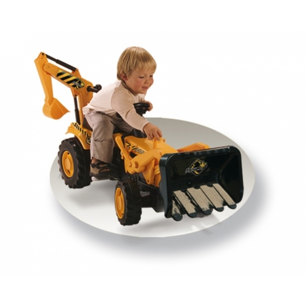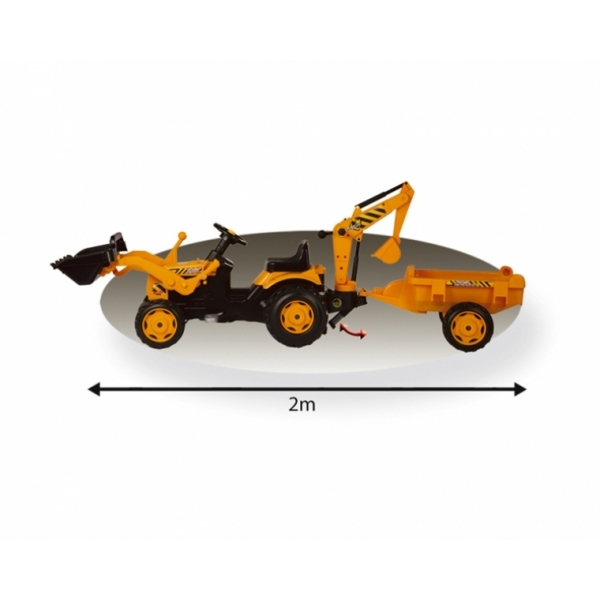 Трактор-экскаватор с прицепом и ковшом простой в управлении, надежный и очень маневренный. На таком удобном тракторе, крутя педали, ребёнок может ездить как вперёд, так и назад. Большой ковш и длинная рука экскаватора помогут грузить груз не руками, а ковшами. Есть большой съемный прицеп для загрузки всего, что нравится вашему малышу. Ребёнок будет в восторге. Педальный трактор-экскаватор поможет ребёнку активнее и с большим интересом осваивать окружающий мир. Педальная машина зачастую имеет внешний вид и аксессуары настоящего электромобиля, но при этом, также как велосипед, дает ребенку необходимую физическую нагрузку, развивает координацию движения и силу ног. В отличие от аккумуляторной машины, педальная не зависит от батарей и источников питания, и поэтому дает большую свободу в использовании. Трактор выполнен из прочного экологически безопасного пластика с соблюдением самых высоких стандартов безопасности. Материал устойчив от истирания и воздействия природных факторов. Вас, несомненно, обрадуют большие колеса с широкой поверхностью из прочного пластика, которые позволят вашему ребенку без труда перемещаться по любой поверхности, избегая скольжения, даже по влажному асфальту. Высокое сиденье с регулировкой расстояния от рулевого колеса и маневренный руль обеспечивают комфорт при катании.