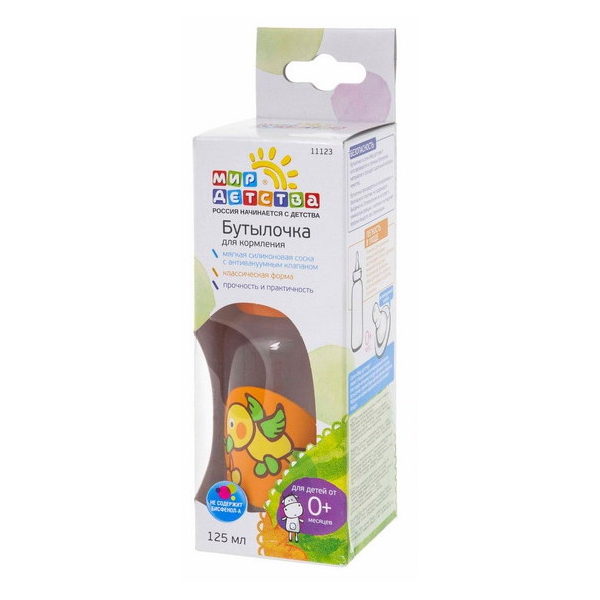 Бутылочка изготовлена из полипропилена - термостойкого небьющегося пластика, который не вступает в химическую реакцию с молоком и не выделяет вредных веществ при стерилизации. Комплектуется классической силиконовой соской с антивакуумным клапаном.