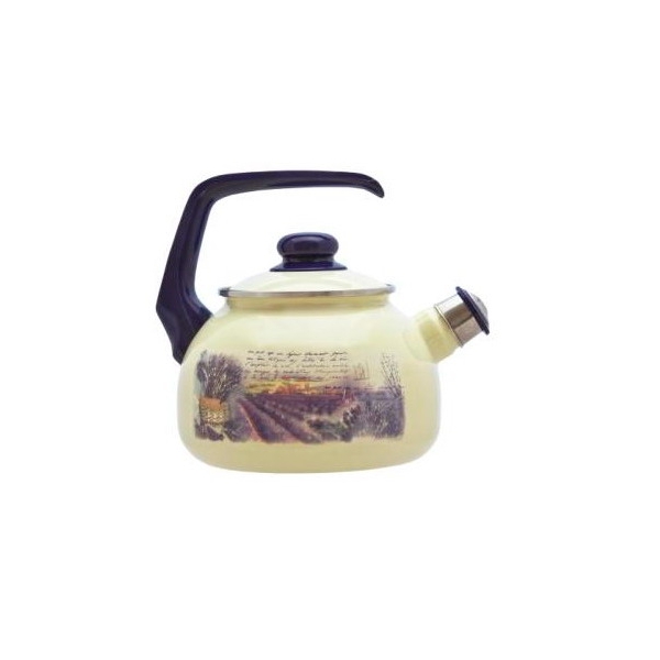 Чайник со свистком выполнен из высокопрочного материала, прост в использовании. Трехслойное стеклоэмалевое покрытие увеличивает срок службы изделия, служит дополнительным барьером между пищей и материалом чайника, надежно защищает рисунок на чайнике от внешнего воздействия.
