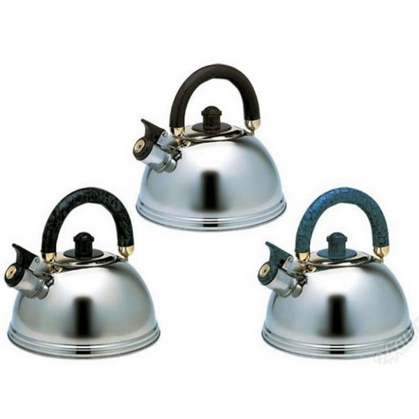 Чайник со свистком имеет неповторимый дизайн. Он изготовлен из высококачественной нержавеющей стали с зеркальной полировкой, которая обеспечивает безупречный внешний вид чайника, а также значительно облегчает чистку. Особая конструкция дна обеспечивает быстрый нагрев, поэтому вода в таком чайнике закипает гораздо быстрее, чем в обычных. Носик чайника оснащен откидным свистком, звуковой сигнал которого подскажет, когда закипит вода. Это освободит вас от непрерывного наблюдения за чайником. Удобная подвижная ручка чайника выполнена из пластика, декорированного под мрамор. Чайник со свистком подходит для использования на всех типах кухонных плит, кроме индукционных. Также изделие можно мыть в посудомоечной машине.