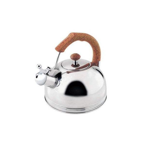 Чайник нержавеющая сталь 2.7 л со свистком и фиксированной пластиковой ручкой с деревянным покрытием.