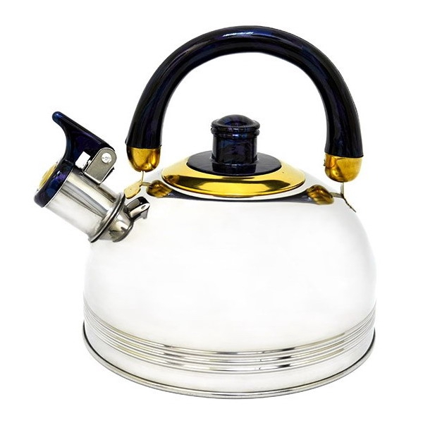Чайник изготовлен из высококачественной нержавеющей стали с зеркальной полировкой. Удобная подвижная ручка выполнена из пластика черного цвета. Капсульное утолщенное дно позволяет чайнику быстро и равномерно нагреваться и дольше сохранять тепло. Чайник оснащен откидным свистком, который громким сигналом оповестит, когда закипит вода.