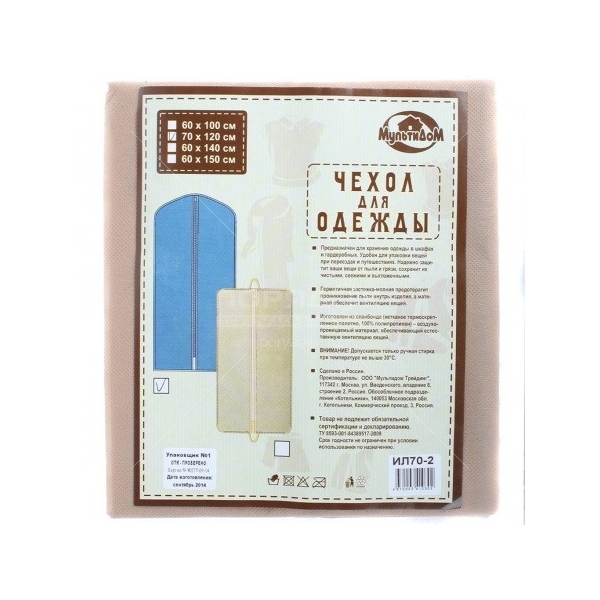 Чехол для одежды 70х120 см арт. ИЛ70-2. Чехлы для одежды - это оптимальный способ хранения курток, пальто, пиджаков или вечерних нарядов.