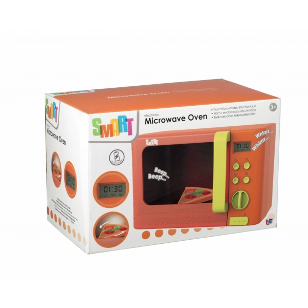 Детская микроволновая печь Smart арт. 1684019.00. Яркая и невероятно реалистичная игрушечная микроволновка, которая оборудована 4 кнопками для выбора времени приготовления пищи, отображающимися на экране дисплея. Все как в реальной жизни - поворачиваете ручку и процесс приготовления пищи начинается, а в середине загорается свет, диск с едой поворачивается, и все это в сопровождении звуков! Когда готовка окончена, необходимо нажать на большую кнопку и двери откроются.