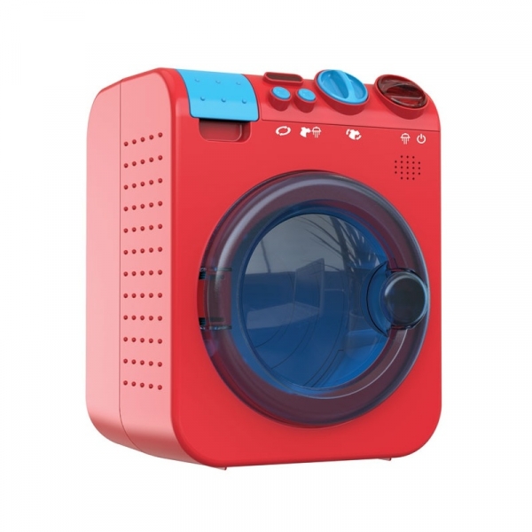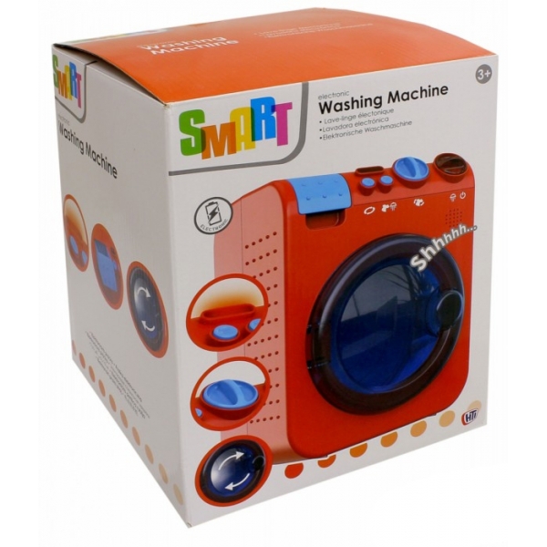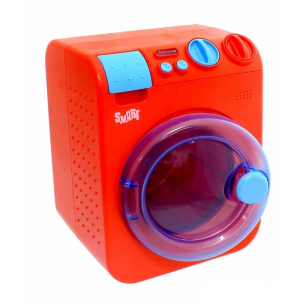 Игрушечная стиральная машинка Smart выглядит почти как настоящая хозяйственная техника. У нее тоже есть кнопки, которые приводят в действие ее механизм и включают звуки, а также включают свет внутри игрушки. Малыш будет в восторге от игры с такой многофункциональной игрушечной бытовой техникой.