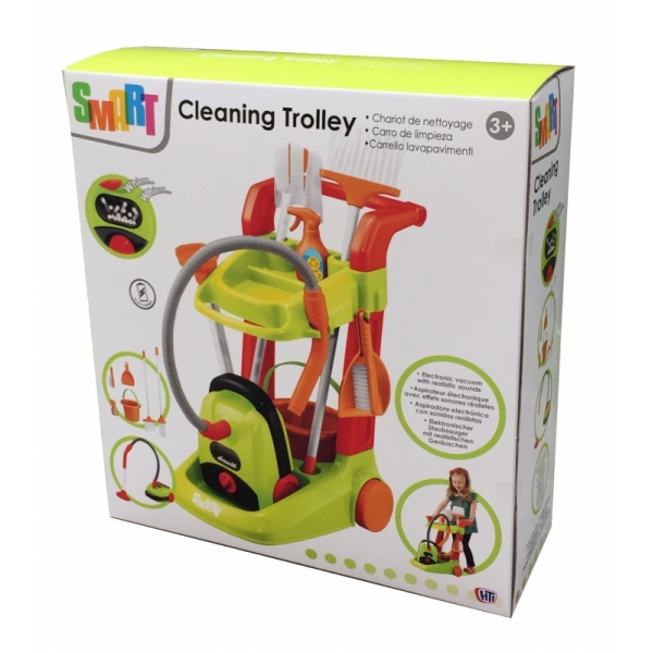 Тележка для уборки с пылесосом Smart арт. 1684072.00. Чистота - залог здоровья и уюта, а при помощи такого удобного набора приспособлений с пылесосом уборка не станет тягостным занятием. Все необходимое имеется под рукой, нужно только взять нужную вещь. Пылесос обладает звуковым эффектом, что делает игру реалистичной и интересной. Тележка и предметы набора изготовлены из прочных качественных материалов, а сами игрушки не представляют опасности для детей.