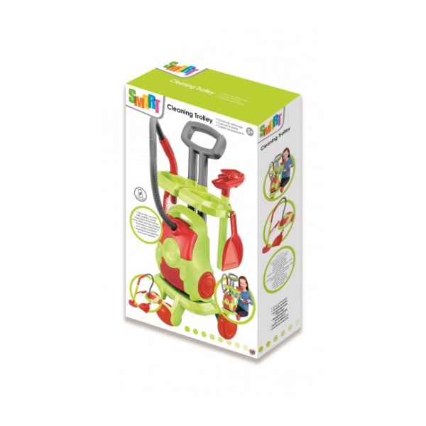 Тележка с пылесосом и аксессуарами Smart арт. 1684083.00. Чистота - залог здоровья и уюта, а при помощи такого удобного набора приспособлений с пылесосом уборка не станет тягостным занятием. Все необходимое имеется под рукой, нужно только взять нужную вещь. Пылесос обладает звуковым эффектом, что делает игру реалистичной и интересной. Тележка и предметы набора изготовлены из прочных качественных материалов, а сами игрушки не представляют опасности для детей.