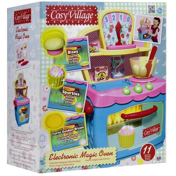 Волшебная электронная печка HTI - Cosy Cottage арт. 1680379.00. Игровой набор "Волшебная электронная печка" привлечет внимание вашей маленькой хозяйки и не позволит ей скучать. Набор включает в себя духовой шкаф с крутящимися регуляторами температуры, пирожное, кекс, булочку, миску, скалку, лопатку, два яйца и другие продукты. Сверху над печкой расположены полочки, противень и весы для взвешивания продуктов.