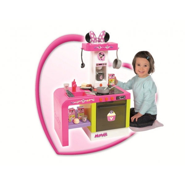 Детская кухня Smoby Cheftronic Minnie Арт. №. 24197 - это компактная кухня с многими электронными функциями. Благодаря своим эргономичным размерам, она нуждается в минимальном пространстве для размещения в детской. Все как в настоящей кухне - мойка с краном (без воды), духовой шкаф с подсветкой, варочная панель (звуки шипения и варения), кофеварка с реалистичными звуками, полочки для размещения продуктов - все это позволяет почувствовать себя настоящей хозяйкой на куне.
