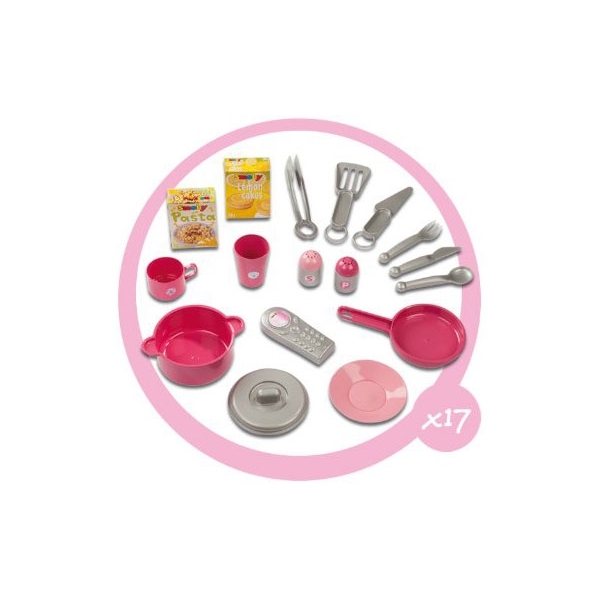 В комплект кухни SMOBY входят 17 аксессуаров.
