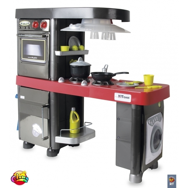 Кухонный модуль Coloma 90581-01-замечательная игра,которая может перерасти в нечто большее- в любовь к кулинарии, в помощь взрослым.Эта кухня создана для серьезной ответственной хозяйки.Стиль выдержан в соответствии с веяниями моды и последних технологий самых настоящих кухонь для взрослых.Все продумано до мелочей-от крана до современной стильной вытяжки.Шкафы,полки,духовка,плита,холодильник,посудомоечная и стиральная машина-все легко можно использовать.