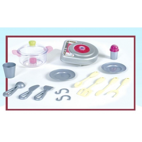 Вдобавок она оснащена звуком и светом - когда хозяйка ставит кастрюлю на плиту,зажигается свет в комфорке и слышны звуки кипящей воды, что сделает игру еще более реалистичной.