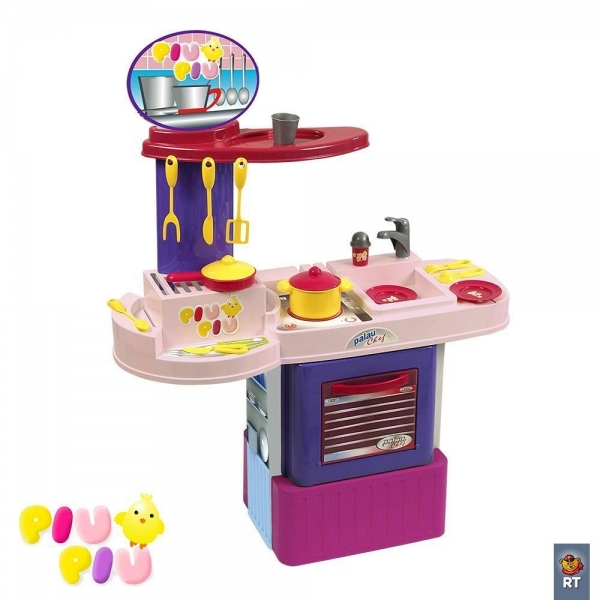 Кухня детская Palau "Piu Piu"100 см с 16 аксессуарами 3095 оснащена по последнему слову техники- все необходимое в наборе: плита с 2 комфорками,вытяжка,духовка, раковина с краном, 16 кухонных аксессуаров посуды.