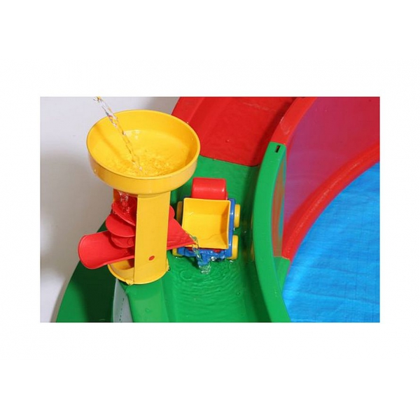 Вашему малышу будет очень интересно наблюдать как эта мельница крутит воду.И он сможет пускать по воде корабли и машинки, которые идут в комплекте с песочницей.