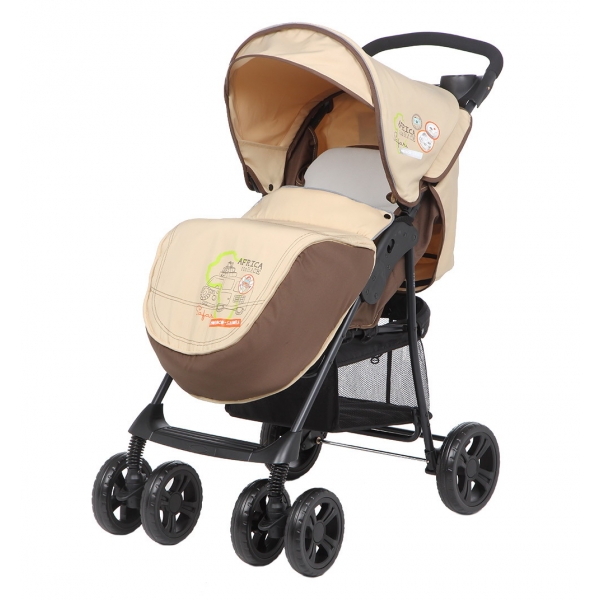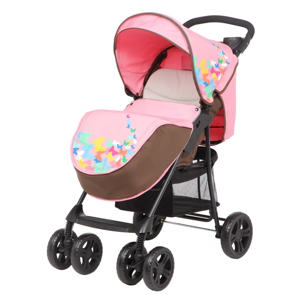 Прогулочная коляска имеет регулируемую подножку и мягкий вкладыш на сиденье.