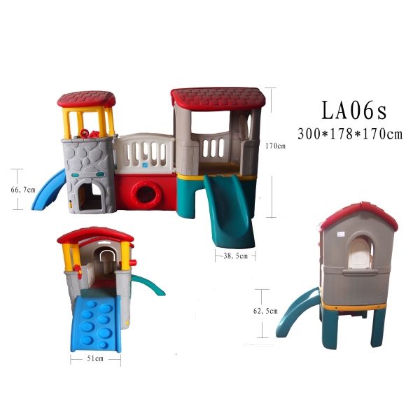 LA06 выполнен в ярких цветах и имеет оригинальный дизайн. Краски устойчивы к ультрафиолетовому излучению и изменениям температуры, устойчивы к истиранию и воздействию внешней среды. Детская площадка соответствует ГОСТам, которые указаны в сертификатах соответствия.