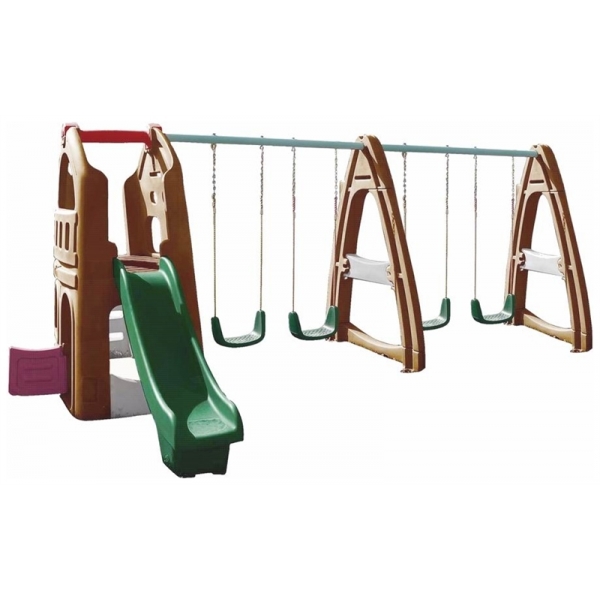 Комплекс оснащен парой качелей, которые подходят для детей от 4х лет и выдерживают нагрузку около 70 кг.