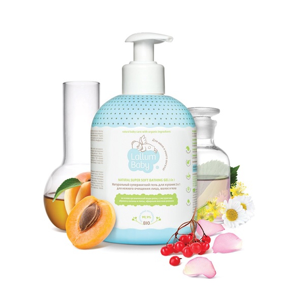 Натуральный на 99,9%, супермягкий детский гель для купания 3 в 1 бережно очищает кожу ребенка во время купания, смягчает волосы и облегчает их расчесывание. Растительный состав средства успокаивает нежную кожу малыша, подготавливает ко сну.