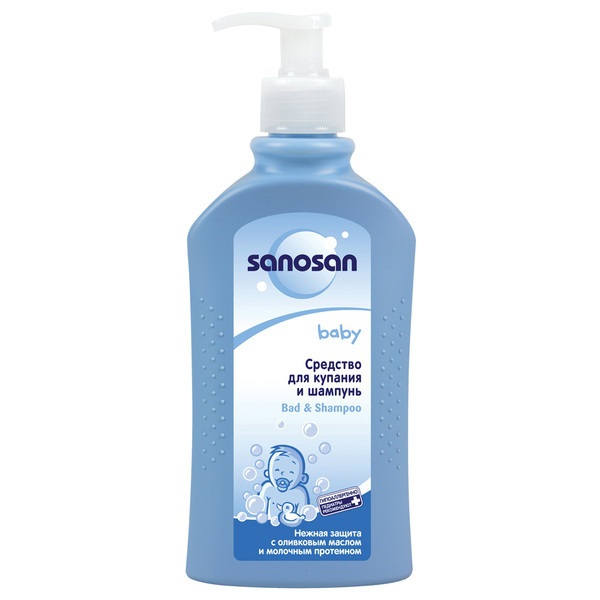 Средство для купания и шампунь Sanosan c помощью мягких моющих компонентов растительного происхождения бережно очищает нежную кожу и тонкие волосы малыша. Входящие в состав активные добавки оливкового масла и молочного протеина, смягчают и предохраняют кожу от пересушивания, сохраняя ее естественный баланс. Подходит для применения с первых дней жизни.