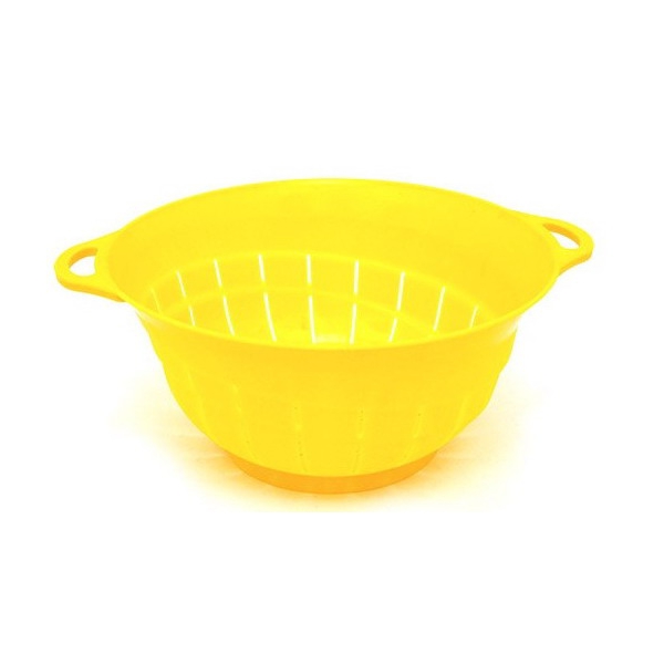 Дуршлаг выполнен из высококачественного пластика, устойчиво держится на собственных ножках, благодаря чему может использоваться как сервировочная чаша. Изделие отлично помещается в раковину.