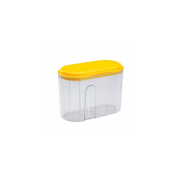 Емкость для сыпучих продуктов имеет овальную форму, специальные углубления позволяют комфортно удерживать емкость в руках. Возможна установка одной емкости на другую для рационального размещения на полке и в шкафу. Плотно прилегающая крышка предохраняет содержимое от влаги и посторонних запахов.