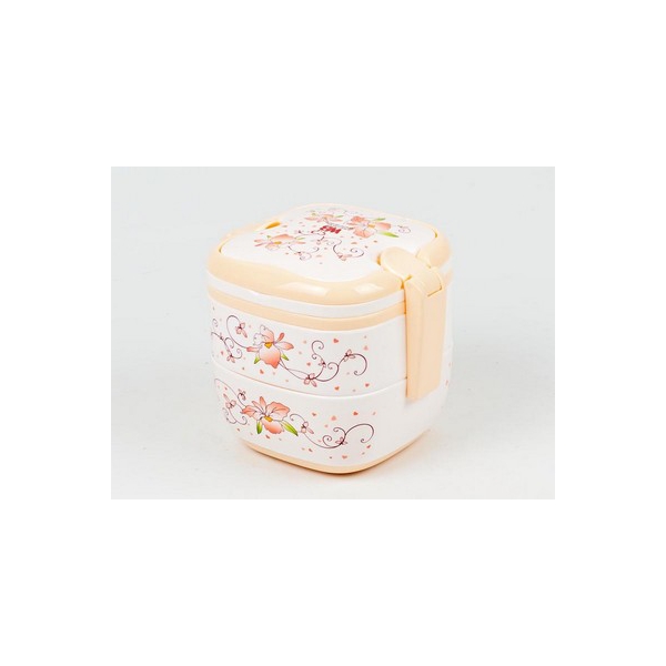 Набор для ланча "Wellberg" включает в себя два вместительных контейнера, тарелку, ложку и крышку с двумя крепкими защелками. Предметы набора выполнены из пищевого пластика. Корпус контейнеров белого цвета оформлен цветами и сердечками.