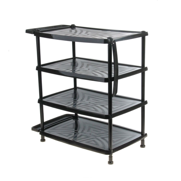 Этажерка для обуви 4-х секц. Этажерки для обуви в прихожую отлично подходят для экономии места в коридоре. Полка для обуви с 4 полками выполнена из высококачественного пластика и предназначена для хранения обуви в прихожей. Оптимальный размер изделия позволяет устанавливать этажерку как в коридоре, так и в шкафу-купе. На каждой полке можно разместить по две пары обуви. В комплект входит ложечка для обуви, крючки и специальная подставка с поддоном для зонтов. Может использоваться для хранения в кладовых и лоджиях. Очень удобная и компактная, но в тоже время вместительная, этажерка прекрасно впишется в пространство вашей прихожей. Компактный размер подходит даже для небольших прихожих. Легко собирается и разбирается.
