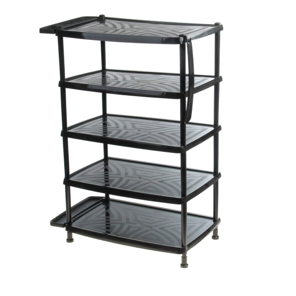 Этажерка для обуви 5 секций арт.АС 14116001. Этажерки для обуви в прихожую отлично подходят для экономии места в коридоре. Полка для обуви с 5 полками выполнена из высококачественного пластика и предназначена для хранения обуви в прихожей. Оптимальный размер изделия позволяет устанавливать этажерку как в коридоре, так и в шкафу-купе. На каждой полке можно разместить по две пары обуви. В комплект входит ложечка для обуви, крючки и специальная подставка с поддоном для зонтов. Может использоваться для хранения в кладовых и лоджиях. Очень удобная и компактная, но в тоже время вместительная, этажерка прекрасно впишется в пространство вашей прихожей. Компактный размер подходит даже для небольших прихожих. Легко собирается и разбирается.