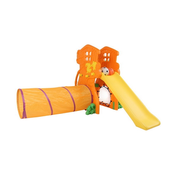 Такой игровой комплекс непременно понравится Вашему малышу, ведь это не просто комплекс, а целая игровая площадка, где каждый малыш сможет найти что-то себе по душе. Комплекс состоит из горки, тоннеля, футбольных ворот и баскетбольного кольца. А если Ваш малыш захочет, он может играть в этом комплексе как в домике. Комплекс имеет красочный дизайн в виде дерева.