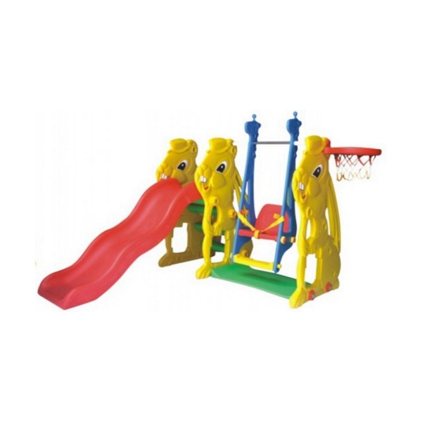 Игровой центр, состоящий из горки, качелей и баскетбольного кольца, для детей от 1,5 до 10 лет. Горка "Заяц" отлично подойдет для игр, как для дома, так и на улице. На горке установлено баскетбольное кольцо, играя с мячом, ребенок быстрее развивает мышцы рук, моторику и координацию движений. Активным отдыхом будет также служить горка, она принесет море радости и восторга Вашему малышу. Кто в детстве не любил катался на качелях. Горка "Заяц" имеет качели, с надежными ремнями безопасности, кроме этого она рассчитана на максимально безопасную амплитуду качания. Большой игровой комплекс позволяет играть одновременно нескольким детям. Конструкция выполнена из полого, но крепкого пластика, благодаря этому игрушка имеет сравнительно небольшой вес и в тоже время безопасна для игр.