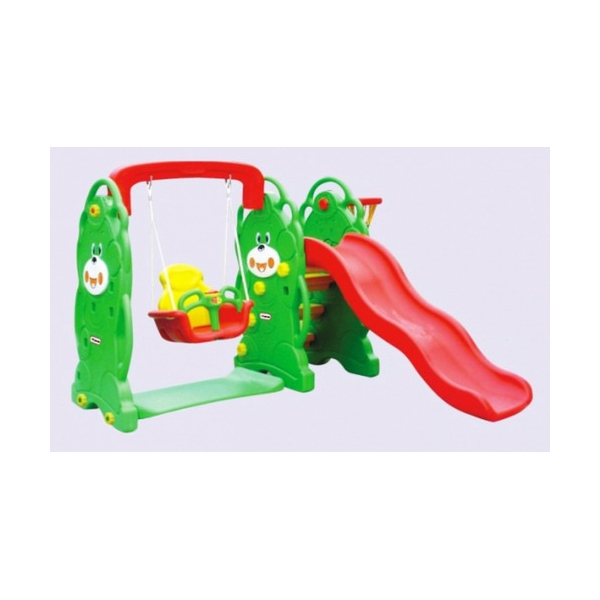 Комплекс Мишка горка + качели + баскетбольное кольцо выполнен из безопасного пластика, прочно скреплен и практичен в использовании. Этот набор создаст самую праздничную атмосферу на вашей собственной игровой площадке.