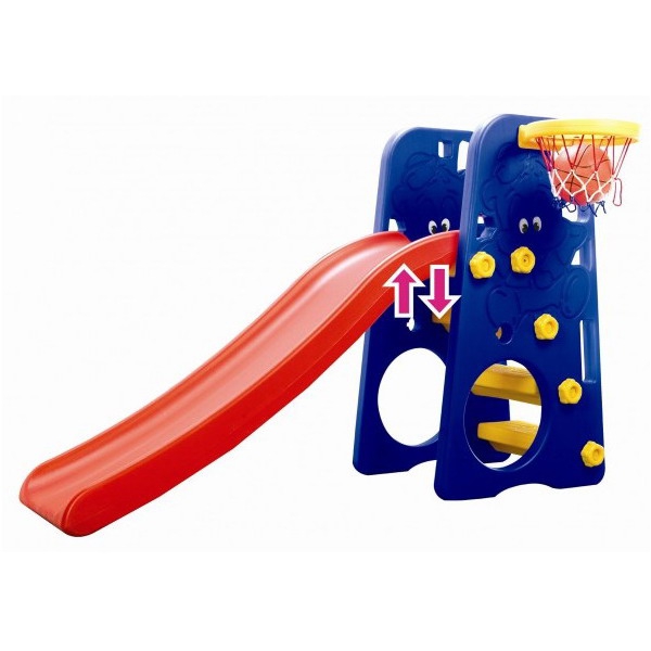 Детская горка в комплекте с баскетбольной корзиной и мячом, предназначена для игр на улице и в помещении.