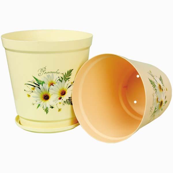 Горшок цветочный "Ромашка" с поддоном. Литраж: 2 л. Диаметр: 155 мм. Высота: 160 мм. Легкий и изысканный стиль горшка поможет создать красивый зеленый уголок в доме. Пластмассовый горшок легок и удобен, красив и эстетичен, надежен и безопасен. Корневая система растения никогда не будет подвержена гниению в горшке благодаря дренажным отверстиям, которые способствуют выведению лишней влаги из почвы. Между стенкой горшка и поддоном есть зазор, который позволяет испаряться лишней влаге и дает возможность прикорневого полива растения. Горшок подходит для выращивания как многолетних, так и однолетних растений.
