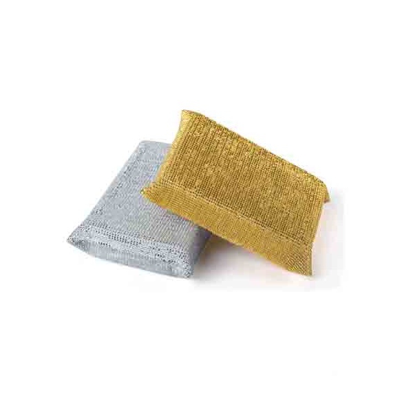 Набор из 2 губок в оплетке. Губка для посуды в оболочке позволяет бережно очистить любые поверхности без царапин и повреждений. Идеально подходит для чистки раковин, плит, сковородок, кастрюль, изделий из чугуна, меди и алюминия. Губка не теряет своей формы и цвета после длительного использования. Губки для мытья посуды, благодаря исключительным свойствам впитывания, а так же прочности, позволяют долгое время сохранить чистоту в Вашем доме. Губки изготовлены из поролона и нити из металлизированной полипропиленовой пленки. Размер: 115х78х28 мм.