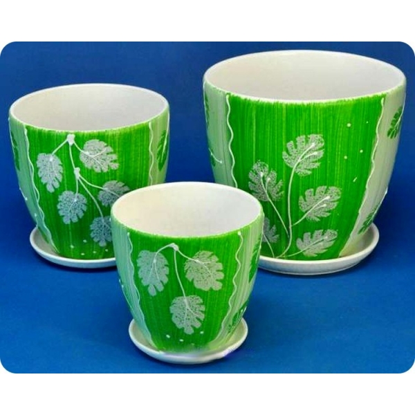 Кашпо из керамики прекрасно подходят для высадки растений. Горшки выполнены из белой глины методом формовки (заливки ее в формы). Это обеспечивает идеально правильную форму горшков, устойчивость на плоскости. Формовка позволяет также избежать изъянов, дефектов на поверхности изделий. Обжиг цветочных горшков производится при очень высоких температурах, благодаря чему керамика прочна и долговечна. Горшки тонкостенные, тяжелые; с их стенок и поддонов без труда смывается даже застарелый солевой налет. Изделия не потеряют своей привлекательности даже спустя несколько десятилетий.