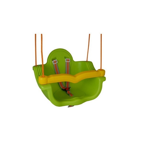 На спинке сидения прикреплены ремни безопасности. Изготовлены качели из прочного материала.