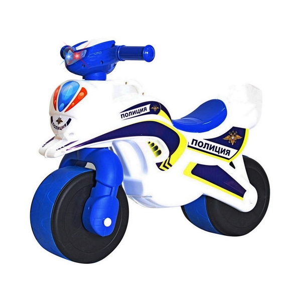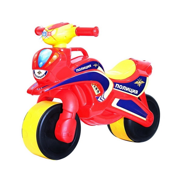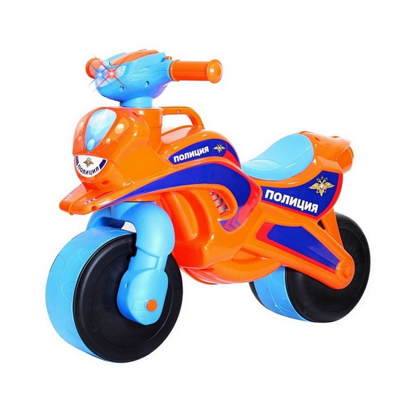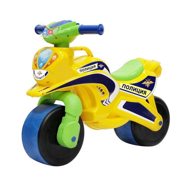 Каталка-мотоцикл со светом и сигналами для малышей. Светится фара. На руле 2 кнопки- 2 сигнала: один сигнал- как заводится мотоцикл, второй сигнал полицейского мотоцикла. Яркий дизайн и аэродинамические формы этого беговела оценят стильные родителям и их дети. Безупречное качество, которое видно невооруженным взглядом оценят обладатели этого детского транспорта. Благодаря своей удобной конструкции кататься на этой каталке смогут даже самые маленькие дети от 18 месяцев. Польза беговелов для детей давно доказана. Каждый малыш от 18 месяцев должен начинать знакомиться с транспортом со своего первого беговела. Езда на беговеле позволит малышам получить первые навыки управления транспортом. Широкие колеса обеспечивают устойчивость беговела. Безопасность- 10 баллов. Руль имеет эргономичную форму и позволяет безопасно управлять каталкой. Уникальность беговела в том, что угол поворота руля сделан таким образом, чтобы быть безопасным в использовании. Грамотно продуманный угол поворота (неполный), что дает малышу безопасное маневрирование и безопасно поворачивать, не позволяя беговелу перевернуться. Проходимые колеса предназначены для любых дорог. Эргономичное сиденье шириной 12 см- малышу будет очень удобно. Уникальная разработка инженеров- ручка для переноски. Это очень удобно. Изготовлено из высококачественного и экологического пластика по самым современным европейским технологиям.